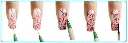 Важно только делать завитки быстро, пока капли лака не успели растечься по всему ногтю