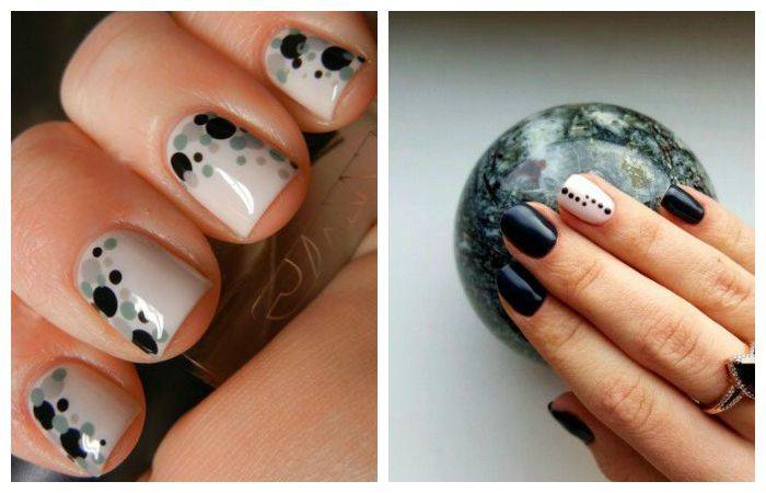 Рисунки на ногтях дотсом в черно-белой гамме, фото