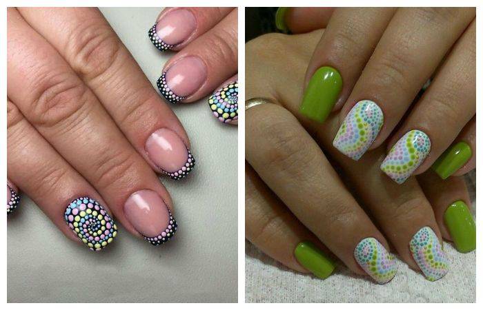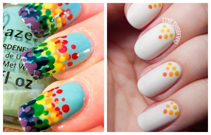 Разноцветные рисунки на ногтях дотсом для начинающих, фото