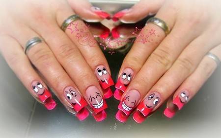 Рисунок можно украшать , стразами и др. Также рисунки акриловыми красками станут замечательным дополнением и длинных ногтях.