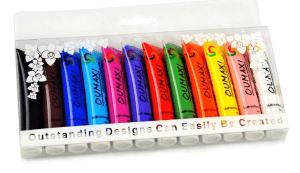 Материалы Polycolor дороже, но это краски нового поколения, именно их выбирают для работы профессионалы. Акрил от бренда Qumaxi отличается яркими интенсивными оттенками, в частности металлизированными – золотыми, серебряными. Краски LadyVictorу при высыхании на ногтях приобретают эффектный глянцевый блеск.