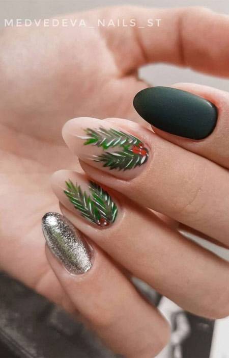 Зеленый новогодний маникюр 2023