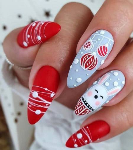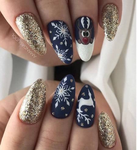 Стильный новогодний маникюр с рисунками