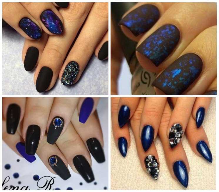 В отличие от популярного белого, синий цвет не является очень простым, поэтому сочетать его с другими оттенками нужно осторожно. Стильно и изысканно выглядит черно-синий маникюр, но для него нужно выбирать более светлые оттенки синего, близкого с голубому
