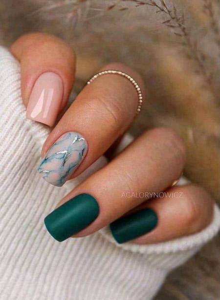 Экспериментируйте с различными текстурами и оттенками зеленого лака в 2023 году. Темно-зеленый глянцевый или матовый маникюр может выглядеть потрясающе.