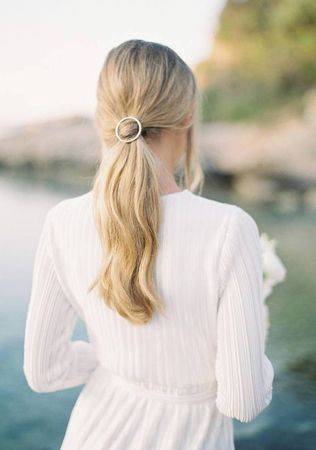 - If it clips in, clip it just above the clear elastic so it sits straight and will conceal the band. If it’s a ribbon, go ahead and tie it into a bow around the elastic to hide it away. Romantic hairstyles don’t get cuter than this!