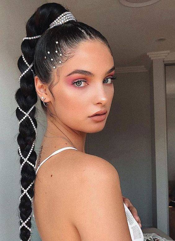 Тут совершенно нет ни каких рамок и можно выбирать тот вариант причёски, который сделает образ завершённым и неотразимым. Также для новогоднего образа можно использовать различные переливающиеся и сверкающие украшения, обручи, цветы и прочие элементы, которые заставят причёску блистать.