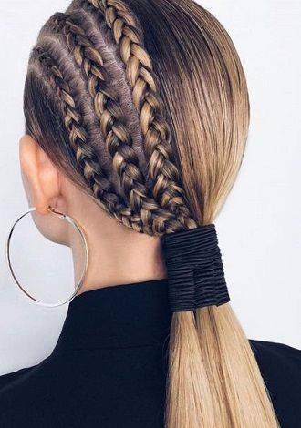 Хвостик с косичками – оригинальное решение для девушек молодого возраста. Вначале формируют хвостик, потом в его составе плетут несколько косичек, а часть прядей оставляют свободными. Дополнительно можно придать локонам пышность с помощью начёса.