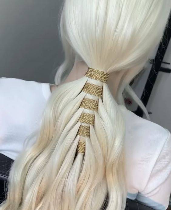 Эта укладка выглядит очень романтично и шикарно подходит для свиданий, прогулок. Обычный конский хвост обвязывают резиночками, располагая их на равном расстоянии друг от друга.