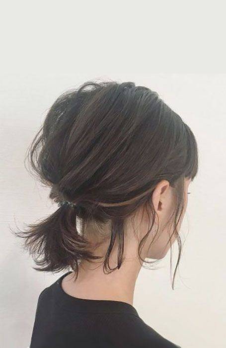Особенно хорошо такая укладка подходит на средние и короткие волосы. Для её создания идеальна стрижка каре, некоторые разновидности боба. Примерно половину шевелюры объединяют в мини-хвостик, а оставшиеся локоны немного завивают и распускают.