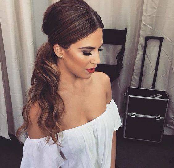 Один из самых простых способов уложить волосы – сделать высокий хвост, который открывает лицо и шею, делает все черты более изящными. Нужно только зачесать пряди на макушку или середину затылка и собрать резинкой. Концы можно расчесать ровно, сделать немного вьющимися или закрутить в кудри.