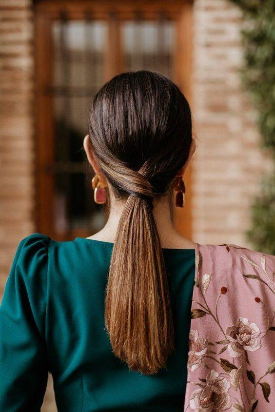 Такая укладка – образец элегантности. Лучше всего она подходит на средние волосы, хотя собрать в хвостик ниже затылка можно и самые короткие локоны. Чтобы низкий хвост не был слишком будничным на вид, его можно заплести в объёмную косу или украсить лентой.