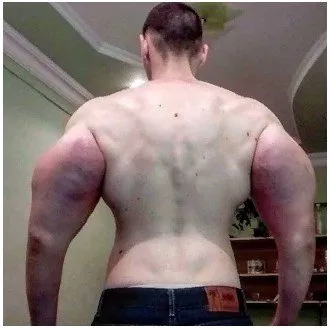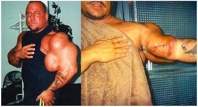 Придя из армии, фрик за короткий месяц, сделал себе настолько много инъекций, что его обхват бицепса стал 60 см.