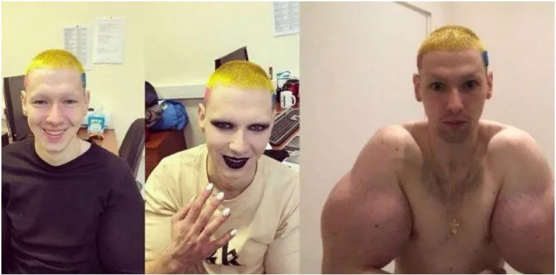 Вишенкой на торте в нашем списке становится мега-звезда российского интернета – Кирилл Терёшин, также известный по прозвищу «Руки-базуки». Кирилл – 21-летний парень из Пятигорска, решивший превратить себя во фрика при помощи лошадиных доз синтола. Своё преобразование юноша начал с трансформации бицепсов. Благодаря инъекциям препарата его руки выросли в объёме до 60 см всего за один месяц. А такой результат возможен только при многократном увеличении дозировки синтола.