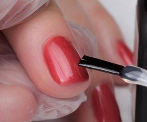- Для начала ногти обезжиривают. С этой целью используют специальное средство, к тому же оно продлит жизнь маникюру.