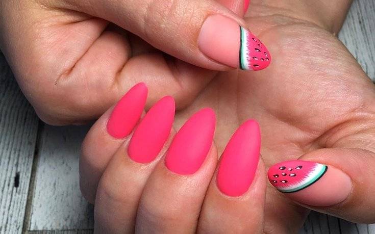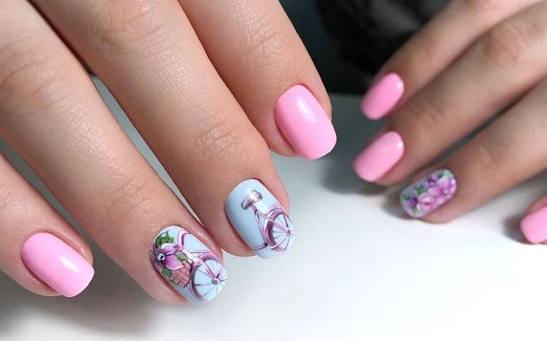Для простейшего дизайна нейл-мастера предлагают применять обычную цветную основу и матовый топ. Такое покрытие делает нежные оттенки еще более мягкими, а насыщенным добавляет глубины. В качестве дополнительного декора используют градиент, наносят объемные 3D-изображения, лепку, роспись вручную или наклейки.