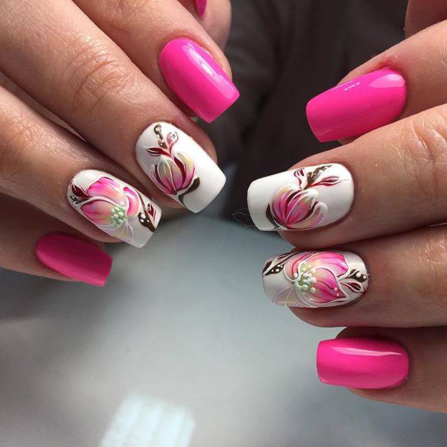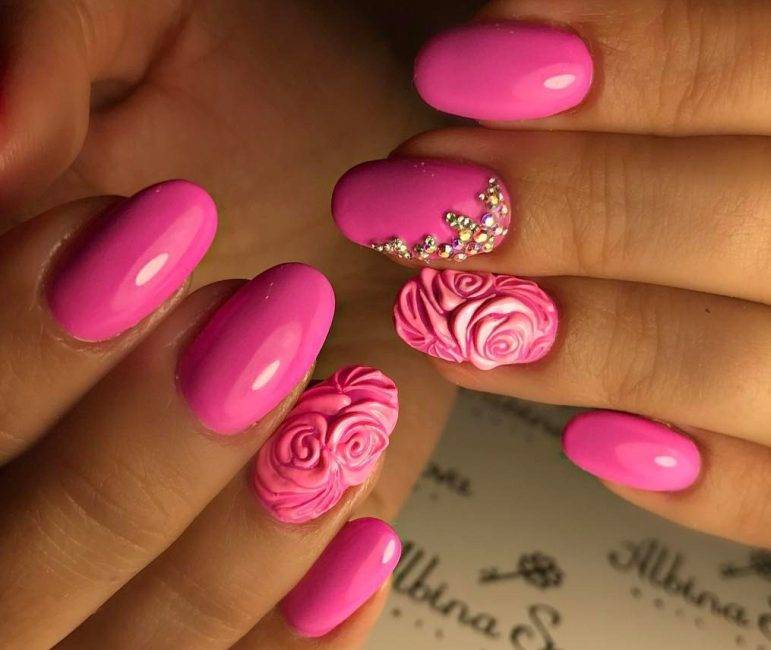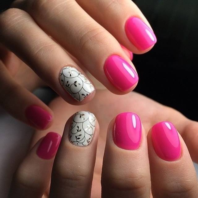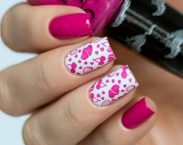 Все они могут быть изображены и на ярко-розовых ногтях и на более спокойном, светом фоне.