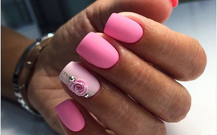 Матовый розовый маникюр