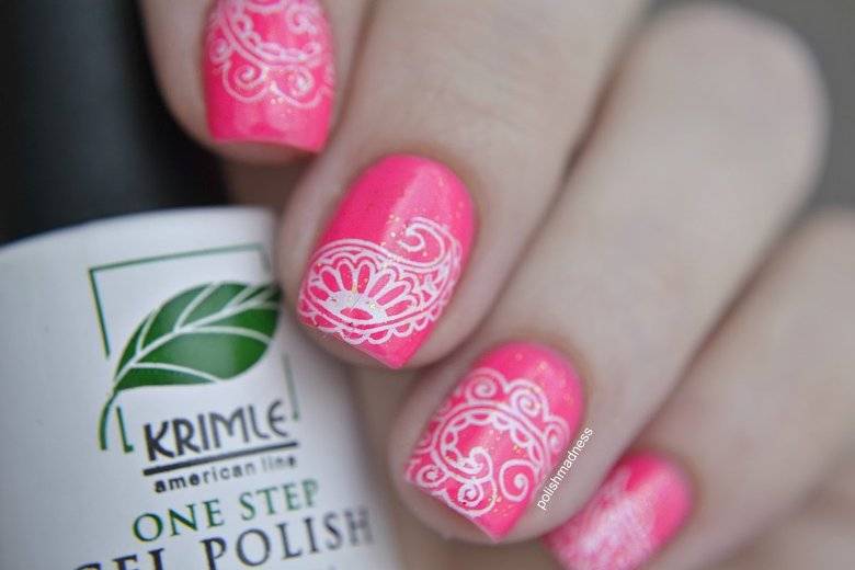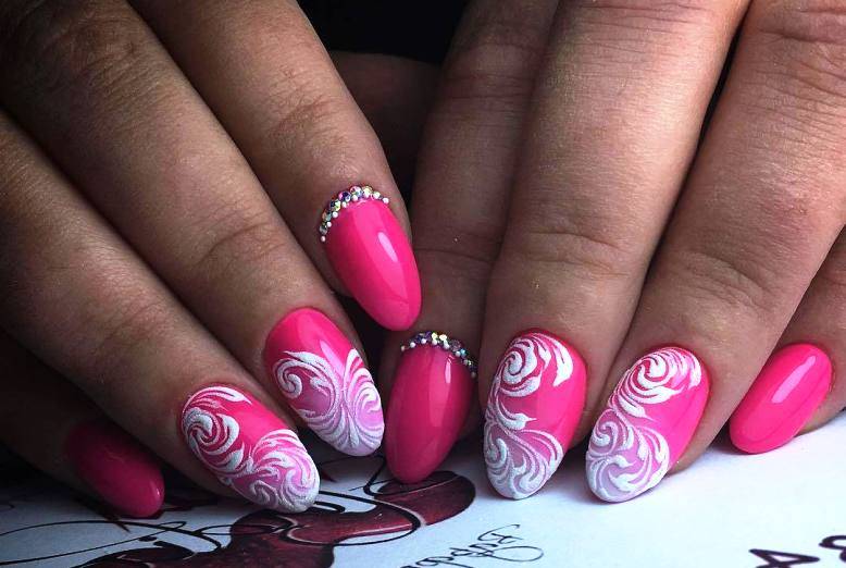 Розовый маникюр с рисунками и узорами