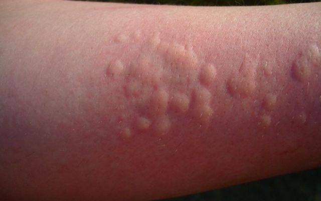 Крапивница на теле, проявившаяся от ожога ядовитым растением