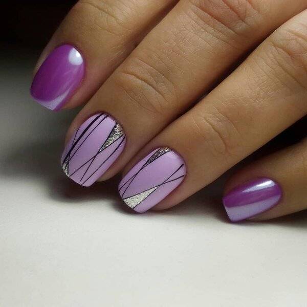 Сочетание благородное. Серебряными могут быть рисунки на ногтях, а также рисунки на геометрическую тематику. Неплохо будет смотреться и розово-серебристое омбре. Также серебряной может быть втирка.