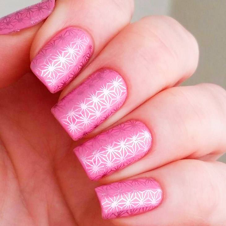 А также можно использовать несколько розовых лаков различных оттенков и разные материалы для дизайна: