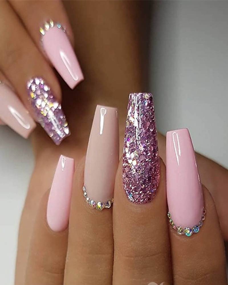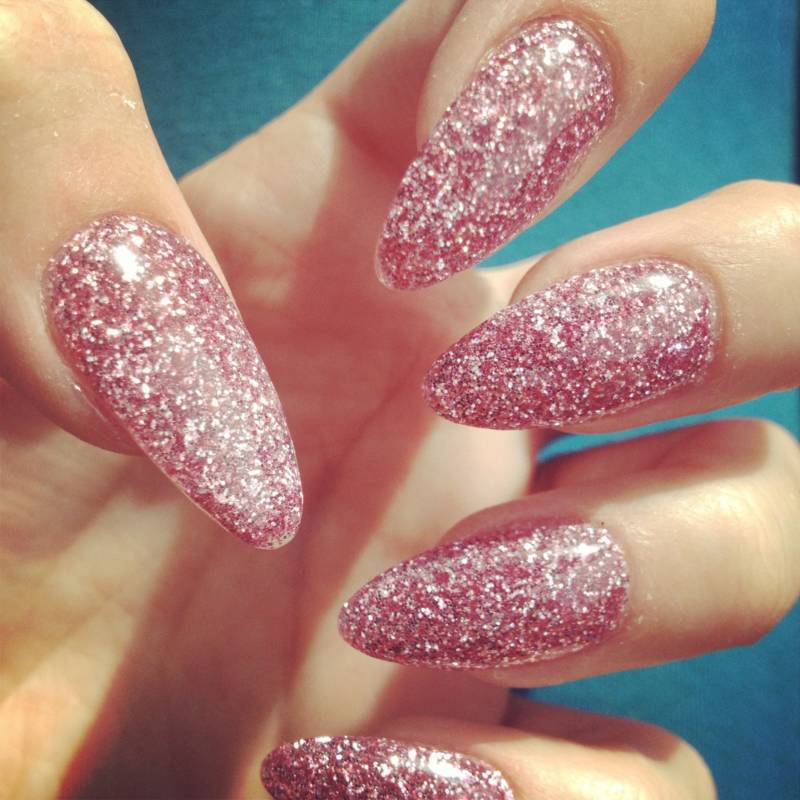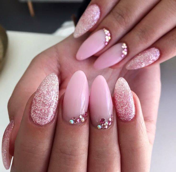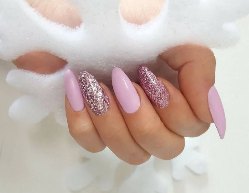 Блестки и глиттер в розовом маникюре