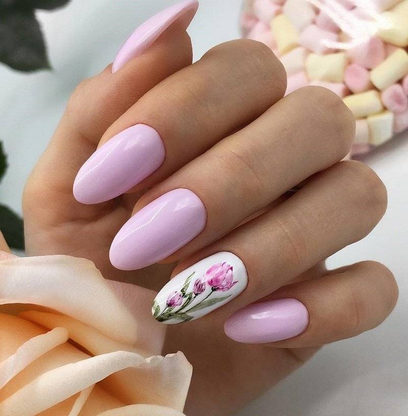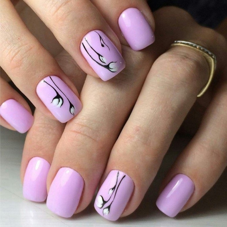 Среди романтичных натур популярны рисунки цветов, сердечек и бабочек. Лучше всего такие рисунки смотрятся на белой, молочной или нюдового цвета основе. Очень элегантно и романтично смотрятся рисунки роз, тюльпанов, маков и различных других красивых цветов.