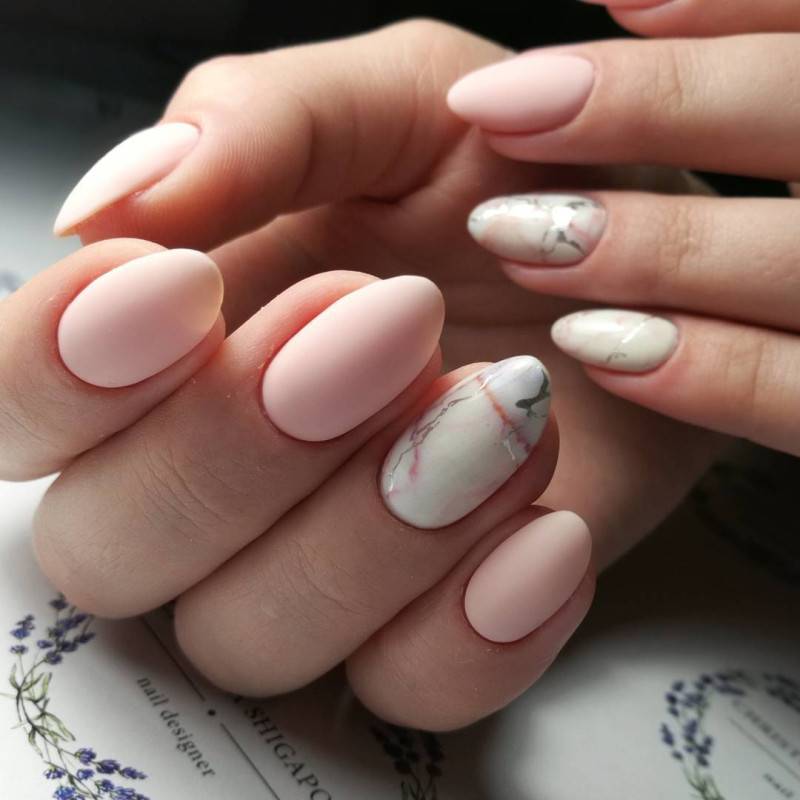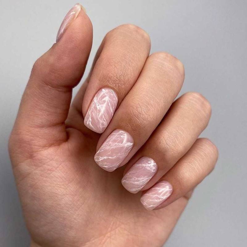 Мраморный розовый дизайн ногтей