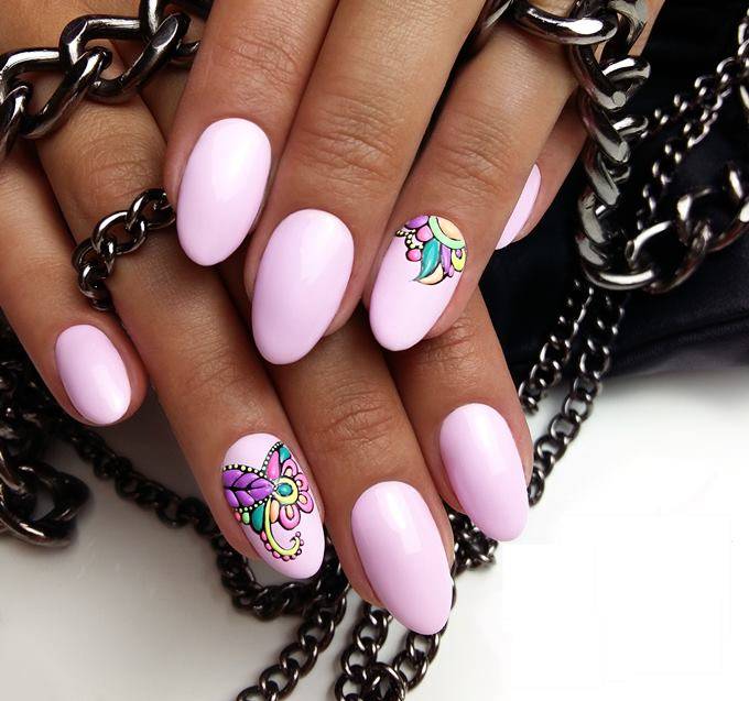 Розовый маникюр с рисунками и узорами