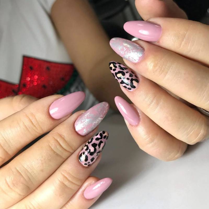 На розовых ногтях можно изобразить не только узоры нежных цветов, но и более дерзкие животные принты. Одним из самых ярких стал леопардовый дизайн, который лучше всего будет выглядеть в яркой интерпретации. В сезоне 2022 в топе окажутся также анималистичные принты: