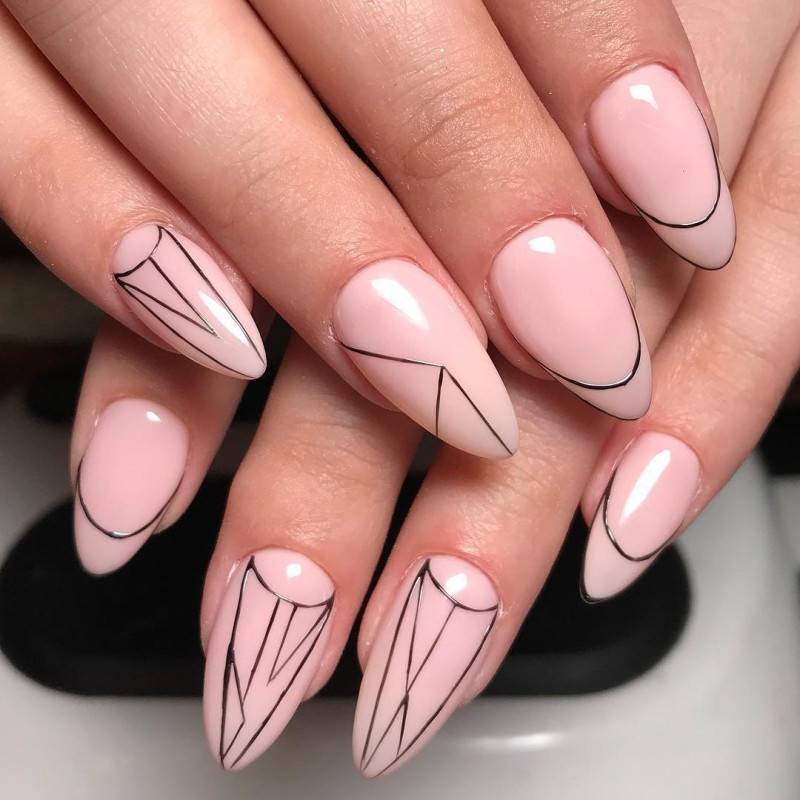 Ниже мы подобрали несколько идей маникюра в розовых тонах с вкраплением черного. Посмотри, насколько эффектно смотрится френч — мы бы не догадались так интересно скомбинировать эти два цвета. Чтобы усилить глубину черного, в некоторых дизайнах можно использовать черный песок или добавить немного серебряного глиттера.