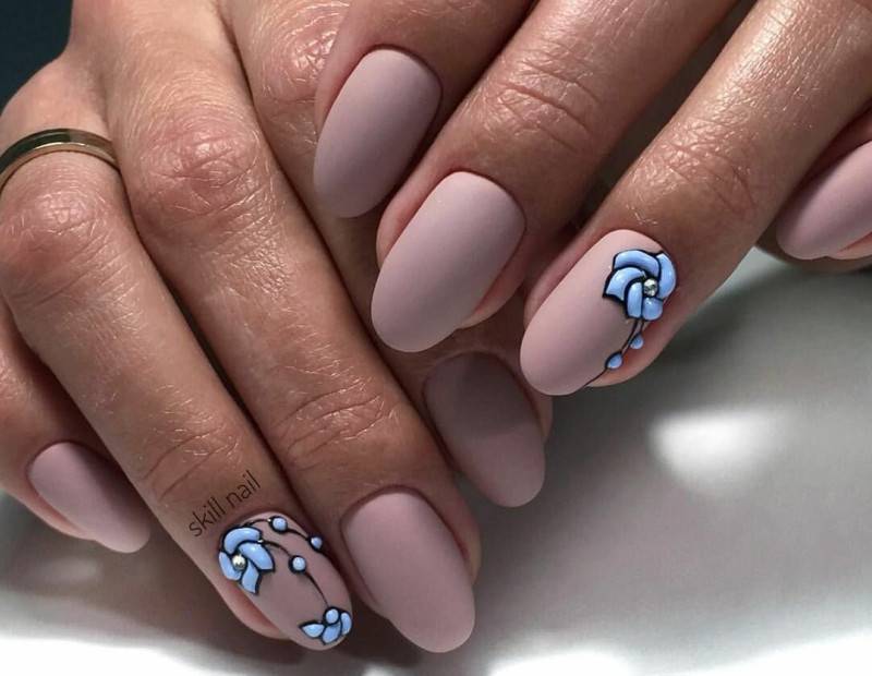 Светло-розовые матовые ноготки можно дополнить стразами и блестками. Также очень красиво будет смотреться френч.
