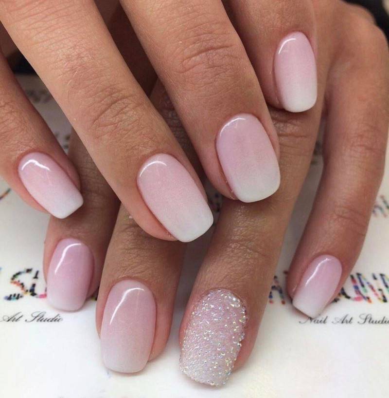 Чтобы сделать белый маникюр в нежно розовых тонах как на фото, ты можешь использовать стразы, градиент, мрамор или фольгу. В этом случае не стоит бояться ярких элементов — на таком лаконичном фоне они будут выглядеть уместно.