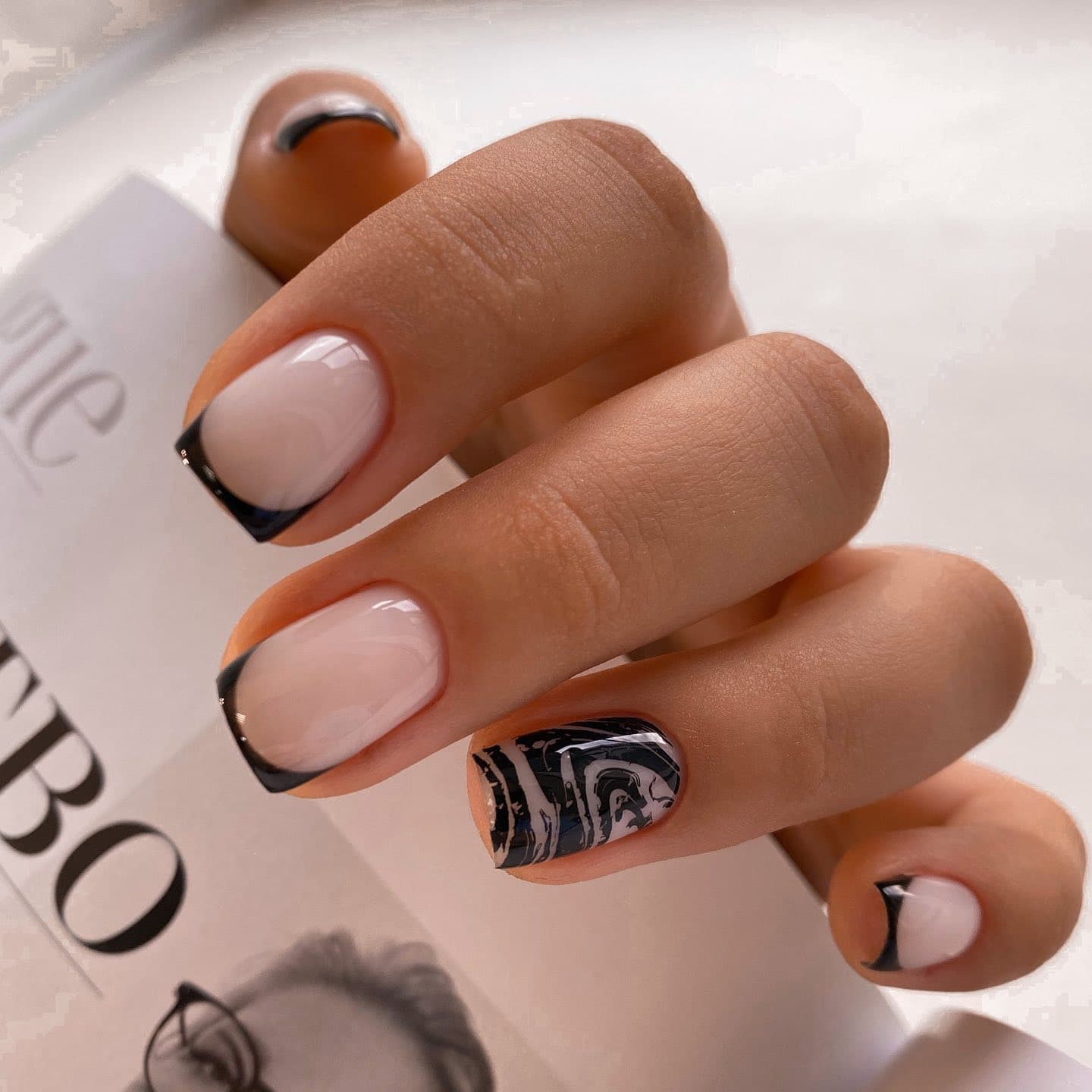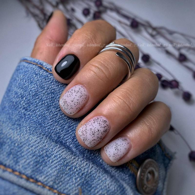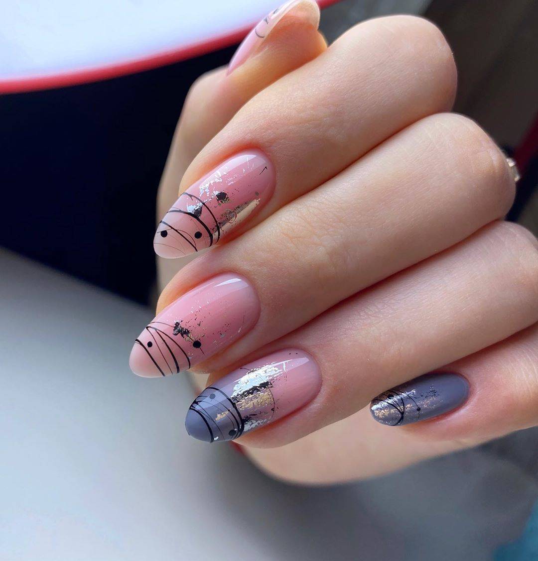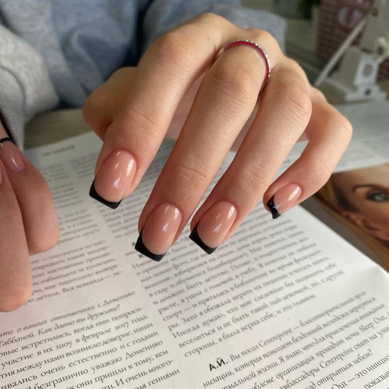 Ниже мы подобрали несколько идей маникюра в розовых тонах с вкраплением черного. Посмотри, насколько эффектно смотрится френч — мы бы не догадались так интересно скомбинировать эти два цвета. Чтобы усилить глубину черного, в некоторых дизайнах можно использовать черный песок или добавить немного серебряного глиттера.