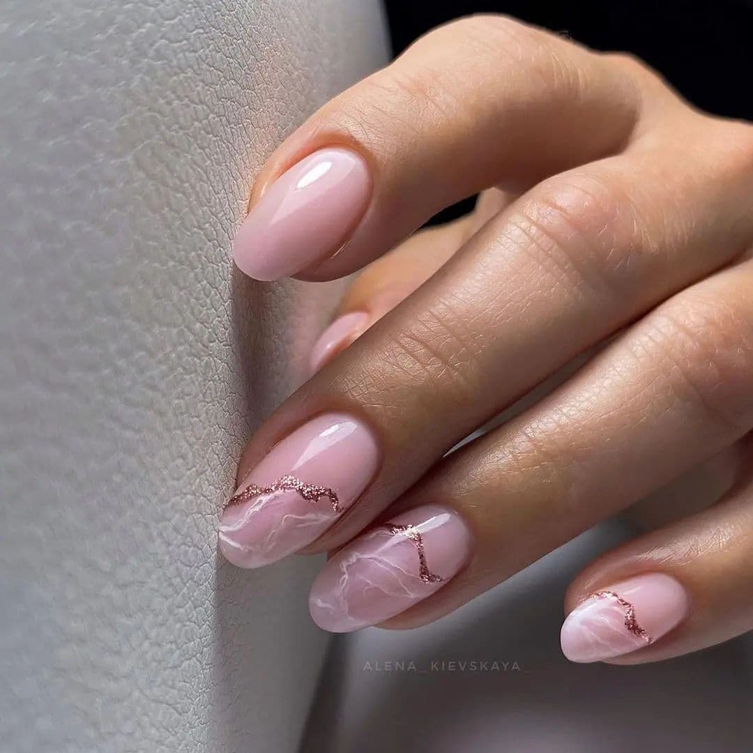 Мраморный розовый дизайн ногтей