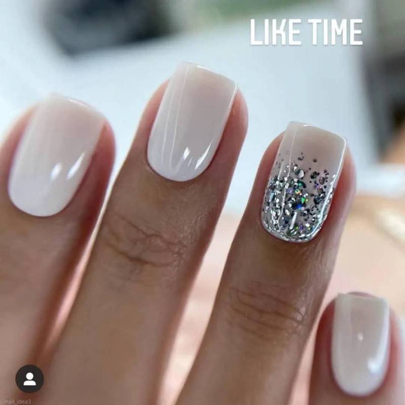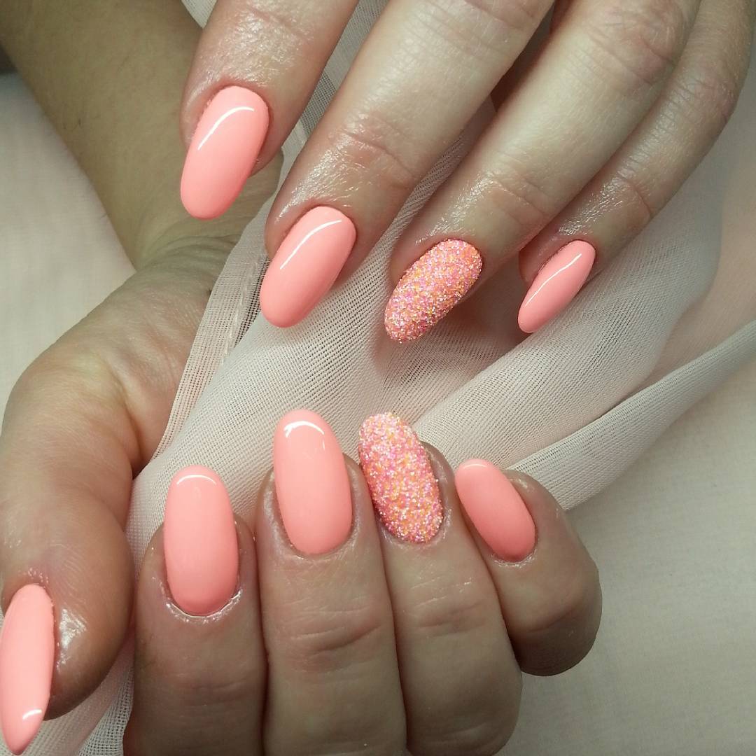 Нанесите розовый лак на ноготь и на один или несколько ногтей добавьте акцент в виде блесток или глиттера. Можно использовать разные размеры и цвета блесток, чтобы создать уникальный эффект. Например, можно нанести блестки на верхнюю часть ногтя или на кончики, чтобы создать эффект френч с блестками.