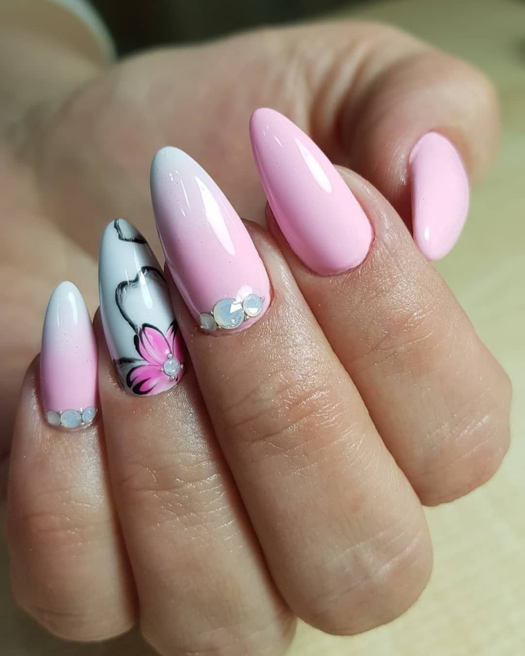 Розовый маникюр с рисунками и узорами