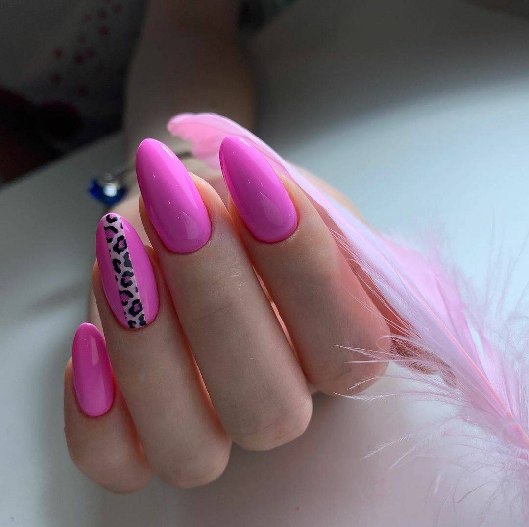 На розовых ногтях можно изобразить не только узоры нежных цветов, но и более дерзкие животные принты. Одним из самых ярких стал леопардовый дизайн, который лучше всего будет выглядеть в яркой интерпретации. В сезоне 2022 в топе окажутся также анималистичные принты: