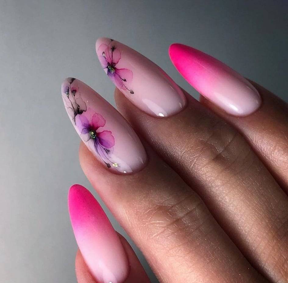Хитом сезона 2022 стали минималистические узоры в стиле акварельных капель. Невероятно популярными стали объемные и фактурные рисунки, витражи из цветов, розовый цветочный френч.
