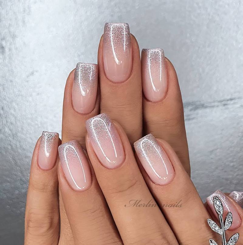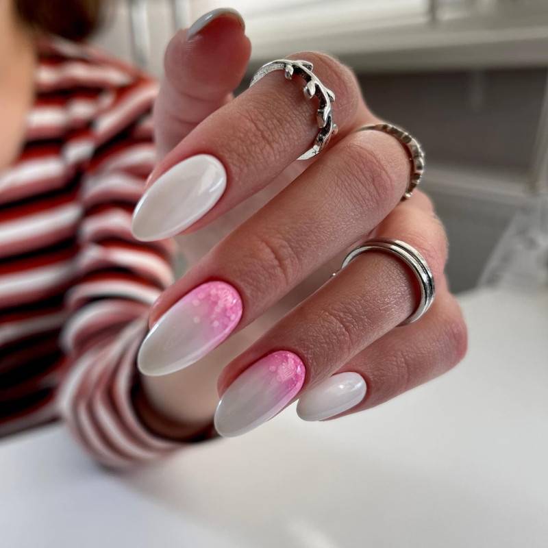 Создайте градиентный эффект на ногтях, используя розовые оттенки, как описано в предыдущем ответе. Затем добавьте блестки или глиттер на переходе между цветами, чтобы придать маникюру дополнительную яркость и сияние.