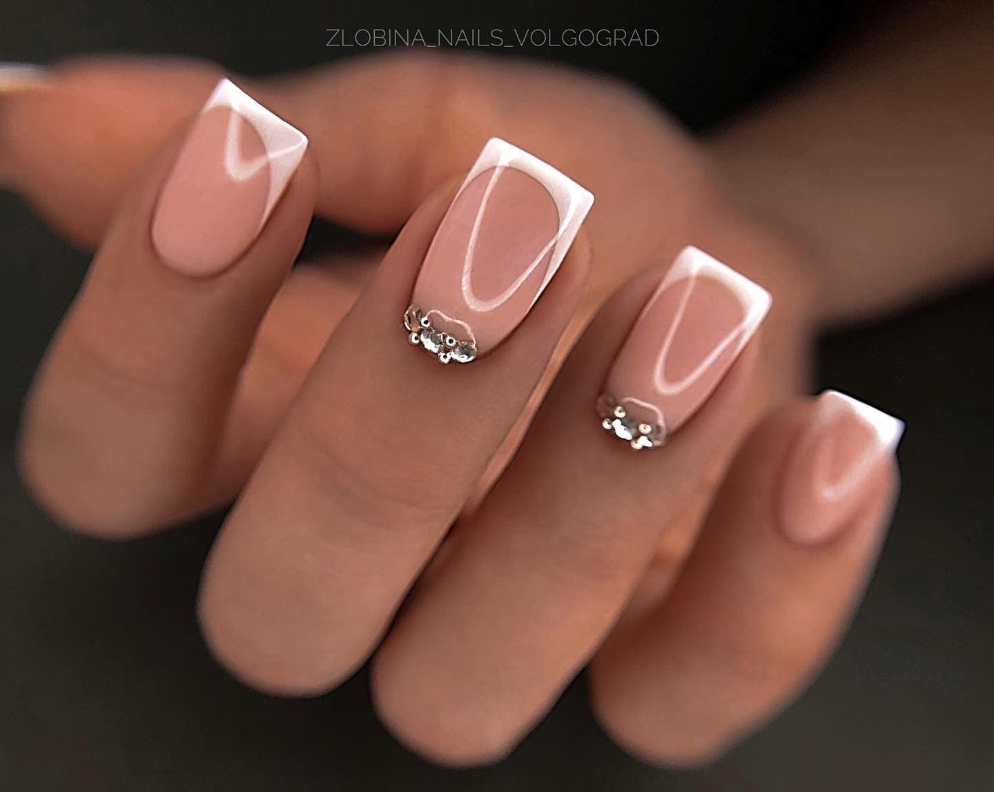 - во френче (мелкими стразами можно оформить улыбку, выложить узор, надпись или фигуру);