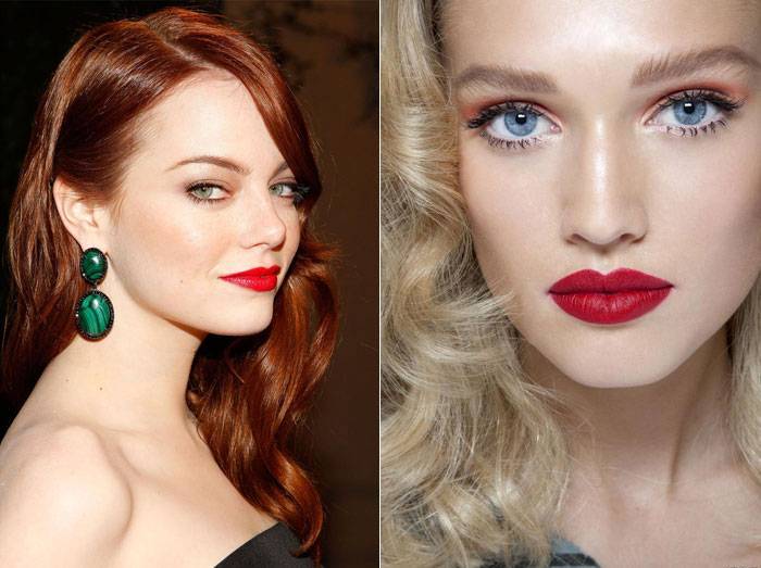 Фото макияжа с красной помадой в зависимости от цвета волос