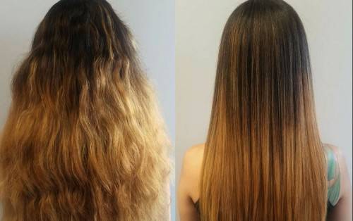 - Во-вторых, кератин оказывает лечебный эффект. Он наполняет собой волос, восстанавливая его здоровую структуру. Поэтому данная процедура показана девушкам с ломкими и безжизненными локонами.