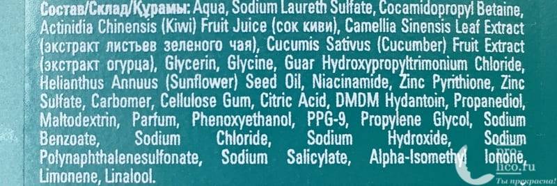 Еще один вид шампуня из этой линейки — шампунь Ледяная свежесть с ментолом в составе. Такое средство гарантирует сразу два действия — снимает раздражение кожи и унимает зуд. В составе также присутствует комплекс питательных веществ и растительных экстрактов Nutrium 10, отвечающий за активацию естественного защитного слоя кожи. И если в первом случае шампунь содержал дополнительный компонент цитрус, здесь вместо него находится эвкалипт.