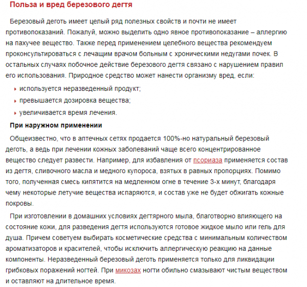 В чистом виде деготь не применяется. Однако в шампунях его концентрация подобрана оптимально для того, чтобы препарат успел оказать необходимое действие за то короткое время, пока он находится на коже головы.
