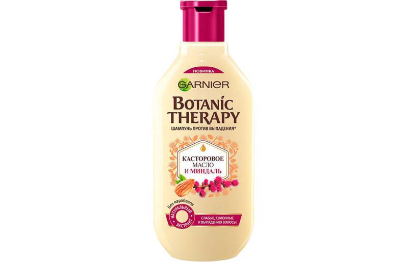 Garnier Botanic Therapy привлекает взгляд покупателя приятной «летней» упаковкой из прозрачного глянцевого пластика. В продаже имеются флаконы объемом по 250 и 400 мл. Дозатор достаточно удобный, с небольшим отверстием. В составе продукта присутствует касторовое масло, которое обеспечивает стимуляцию роста и волос и их укрепление. Экстракт миндаля восстанавливает красоту безжизненного и сухого волоса. После курса применения шампуня можно заметить рост волос и их укрепление. В финале вы имеете более густую шевелюру с сияющими и здоровыми локонами.