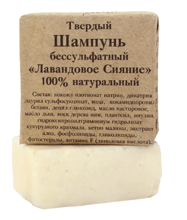 Квадратной формы, с ароматом лаванды. Удобно ложится в руку, размыливается в пушистую пенку. Смывается легко, не спутывая длину. Содержит растительный аналог химических силиконов, получаемый из оливы. Обволакивает волос, создавая эффект маски. Нежно очищает, питает пряди по всей длине. Они становятся мягкие, гладкие, можно не использовать бальзам.