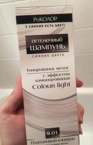 - Шампуни. Как правило, они подходят светлым волосам, поскольку убирают неприятный оттенок желтизны за счёт присутствия фиолетового пигмента. Единственным недостатком такой косметики является пересушивание локонов.