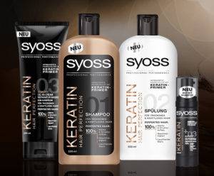 - Syoss кератин предназначен для сухих, безжизненных прядей. В составе присутствует обогащенный протеин, витамина, минералы. Он восстанавливает кудри на клеточном уровне, придавая им сияющий блеск.
